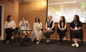 Panel members: Vanúsia Nogueira, executive director, International Coffee Organization; Dr Sharon Hall, chief executive, UK Tea & Infusions Association; Shabnam Weber, president, Tea & Herbal Association of Canada; Dilara Celik, partnerships and communications manager, 4C; Keely Wade, marketing manager, Lincoln & York.